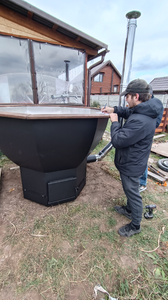 Встретились. Обсудили мой проект: восьмигранный чан на 4-6 человек, с дровяной печью. Он кивал, говорил «да это ерунда», «все сделаем». Цену назвал в 120 000 рублей. Я, наученный горьким опытом поиска, спросил про материалы.
